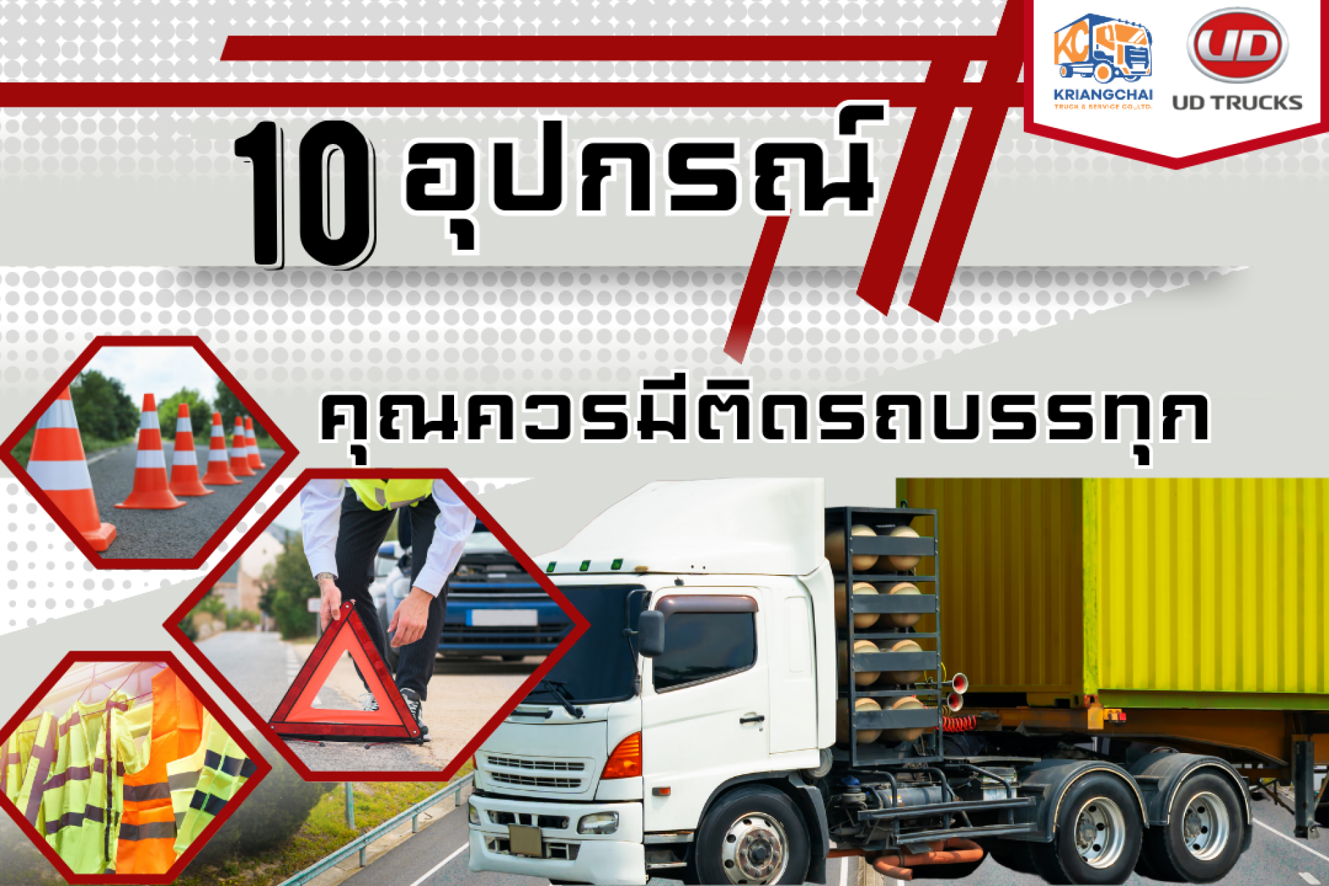 จะเห็นได้ว่า 10 อุปกรณ์ที่กล่าวมาล้วนมีประโยชน์ในการติดรถบรรทุกไว้ใช้ในยามฉุกเฉินได้ตลอดเวลา ซึ่งมีประโยชน์ทางความปลอดภัยทั้งต่อตัวพนักงานผู้ขับขี่ พนักงานขนส่ง รวมถึงผู้ใช้รถใช้ถนนร่วมกัน